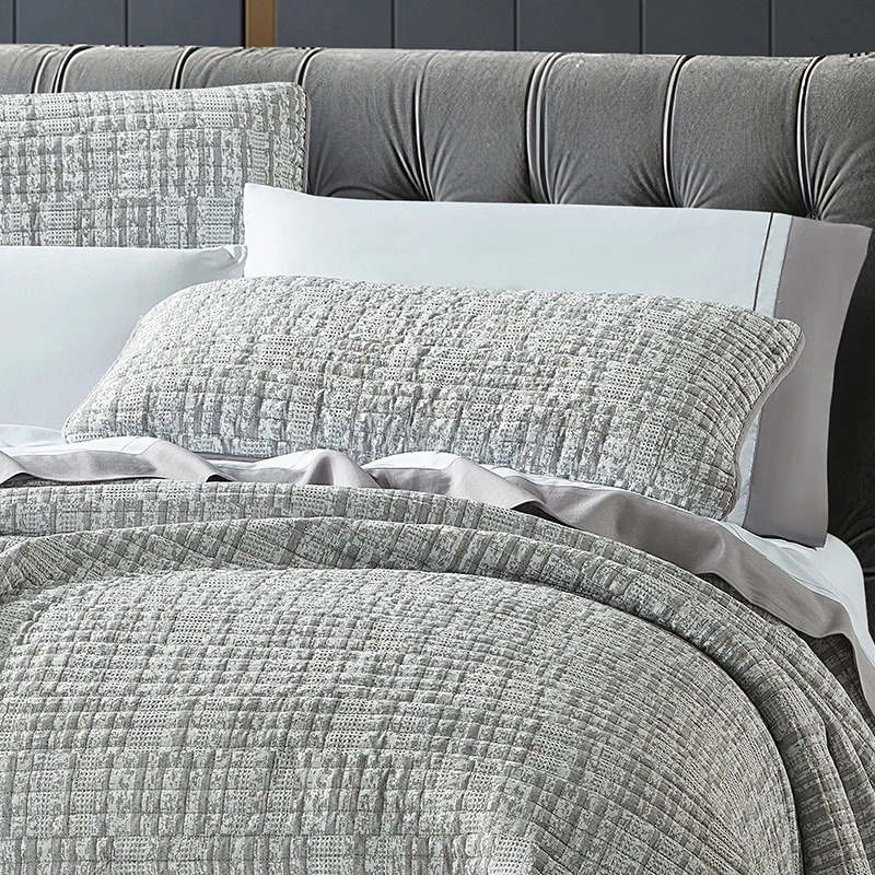 For Customizable Modern Minimalist Style Gray 100% Polyester Woven Eco-Friendly All-Season 4-Piece Bedspread Set