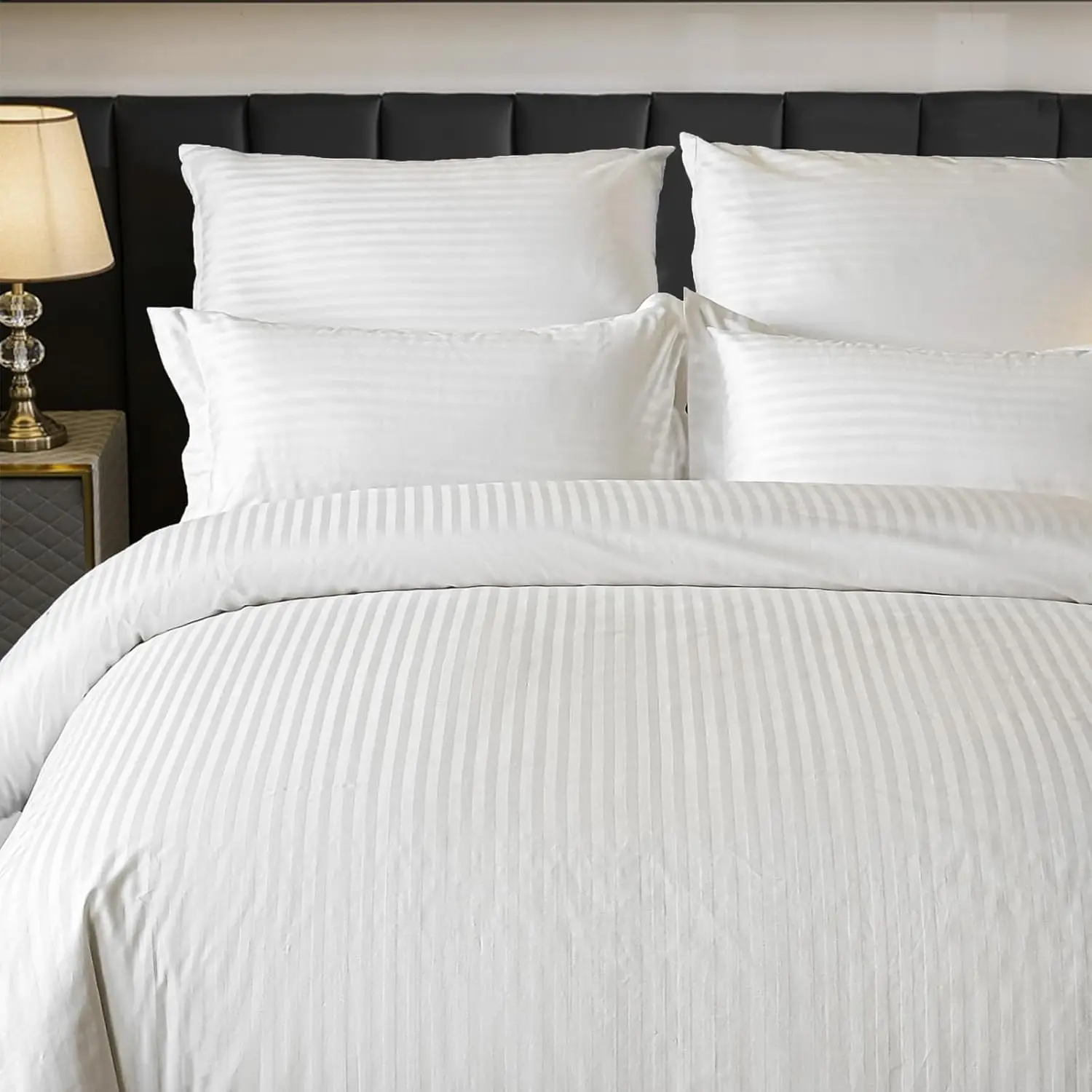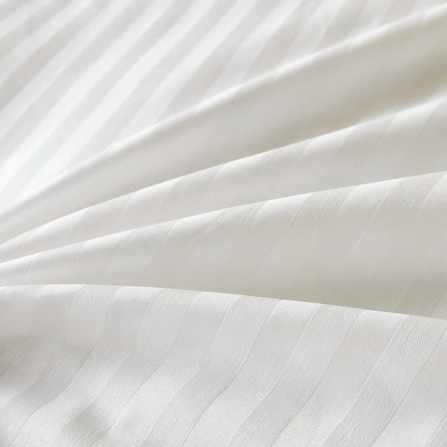 Commercial Hotel Bed Sheet Set 100 Percent Cotton Satin Stripe Easy Care 4PC
