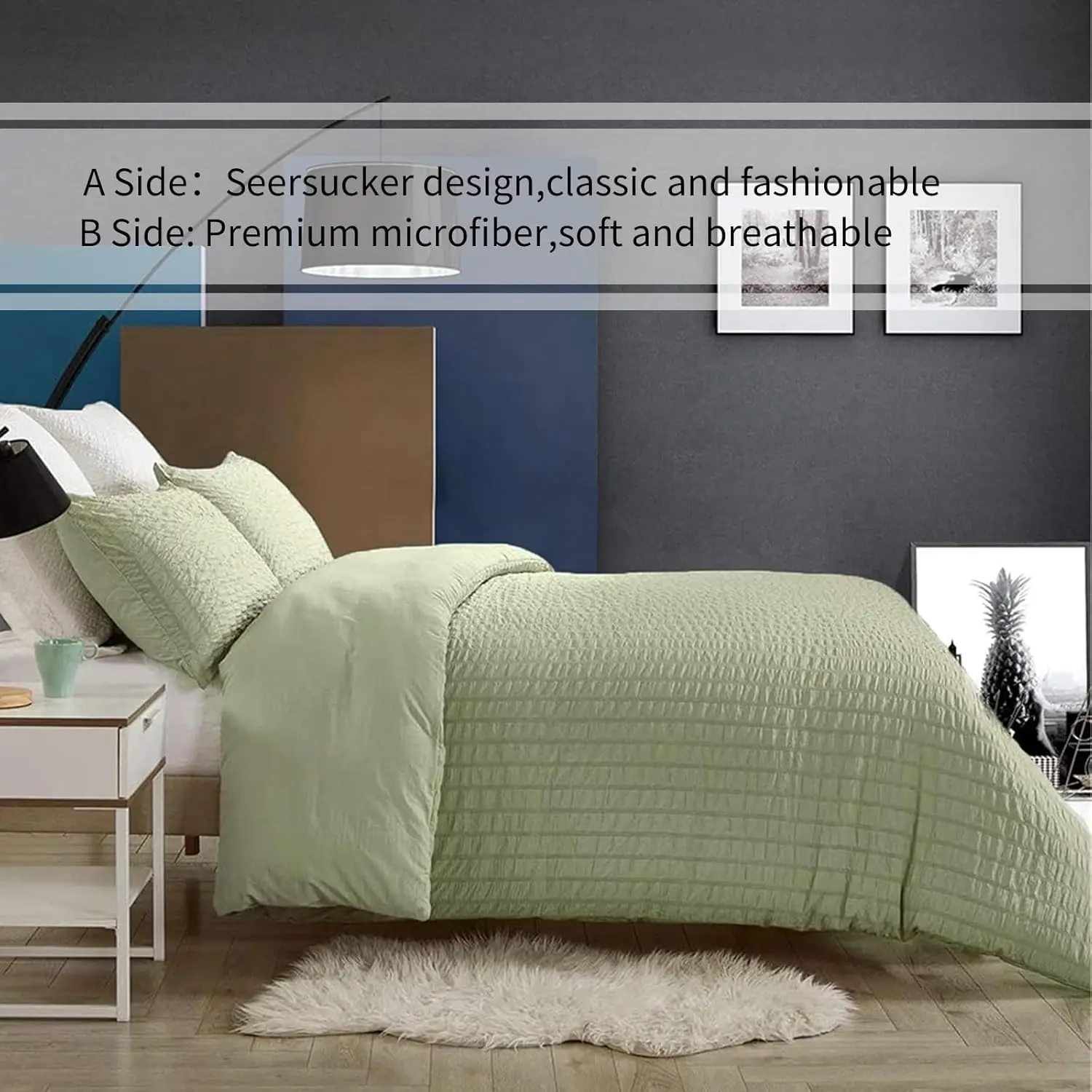 100% Bamboo Fiber King Size 300tc 3-Piece Modern Duvet Cover Set with Flat Sheet Fitted Sheet and Pillowcases