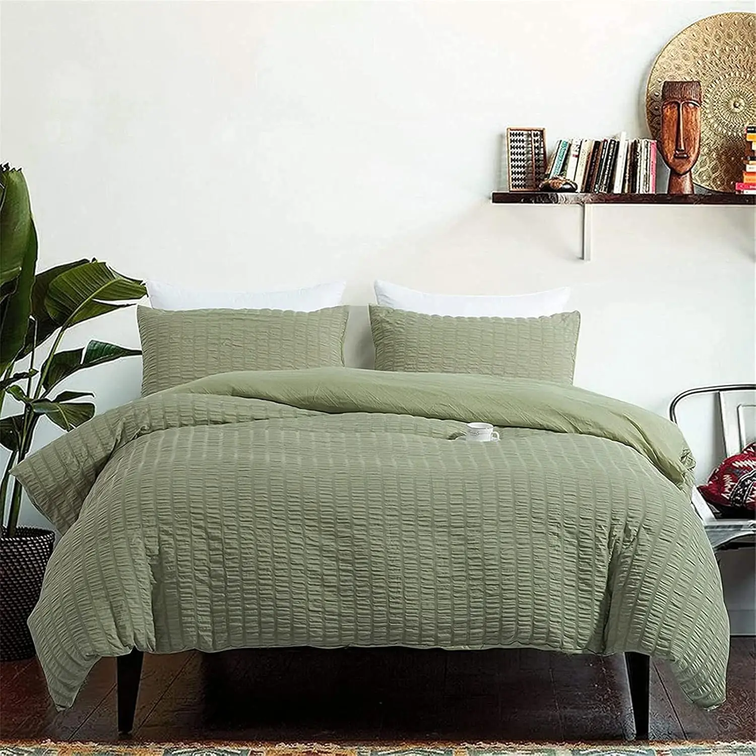 100% Bamboo Fiber Woven Modern Solid Color Bedding Set Super King Size Includes Flat Bed Sheet Fitted Duvet Cover