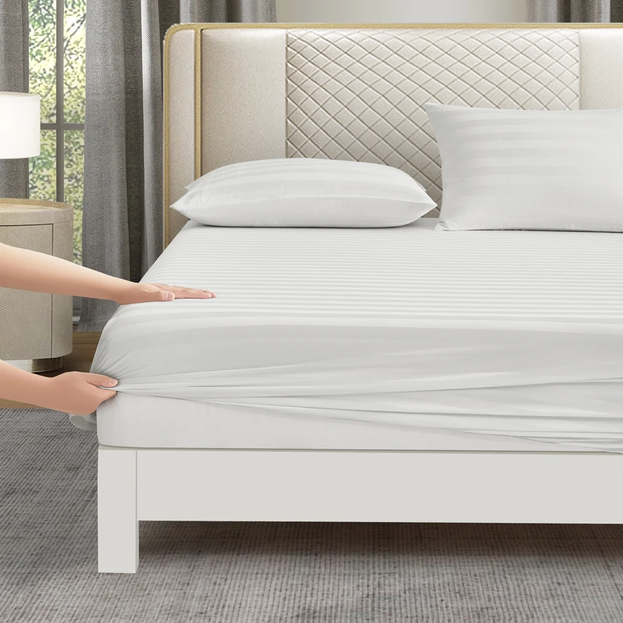 Modern Satin Hotel 300TC Bamboo Four-Piece Bedding Set with 3cm Stripe Woven Quilt Cover and Fitted Sheet for Hotels