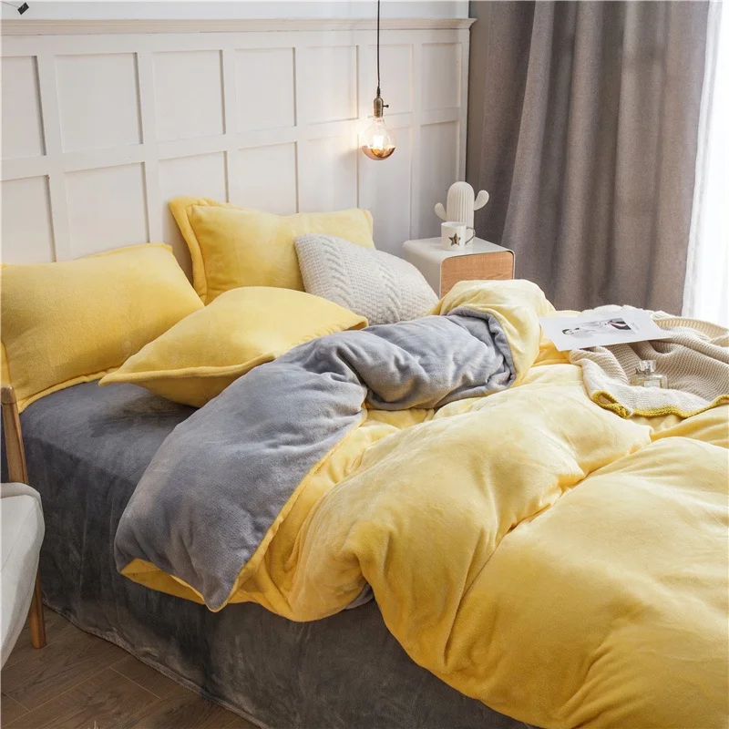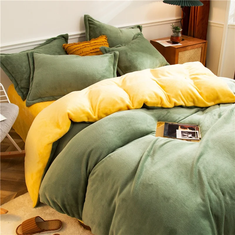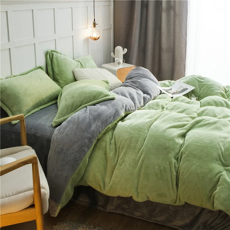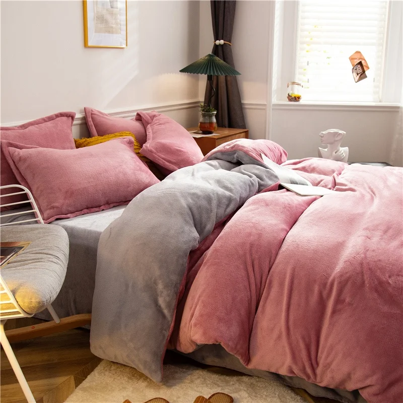 AOKA Factory Supply Customized Warm Thick Luxury Teddy Fleece Bedding Set for Cold Winner