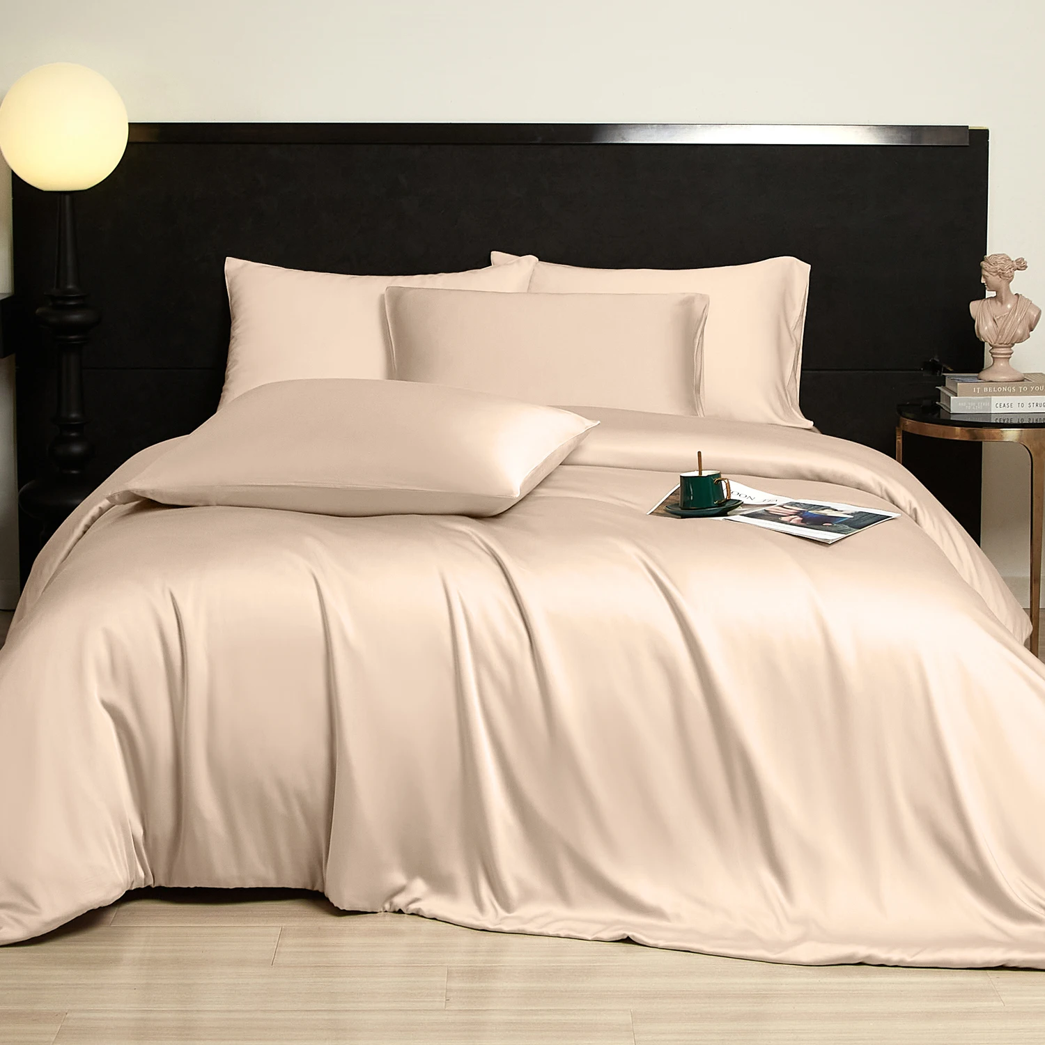 100% Bamboo Fiber Woven Modern Solid Color Bedding Set Super King Size Includes Flat Bed Sheet Fitted Duvet Cover