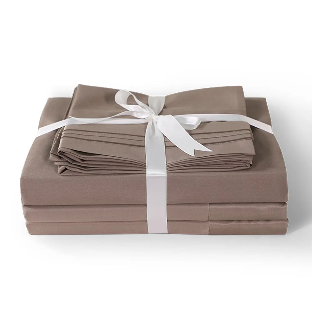 100% Bamboo Woven Modern Solid Color Bedding Set Flat Sheet Fitted Sheet Pillowcases 300tc Thread Count Wedding Four-piece Kit