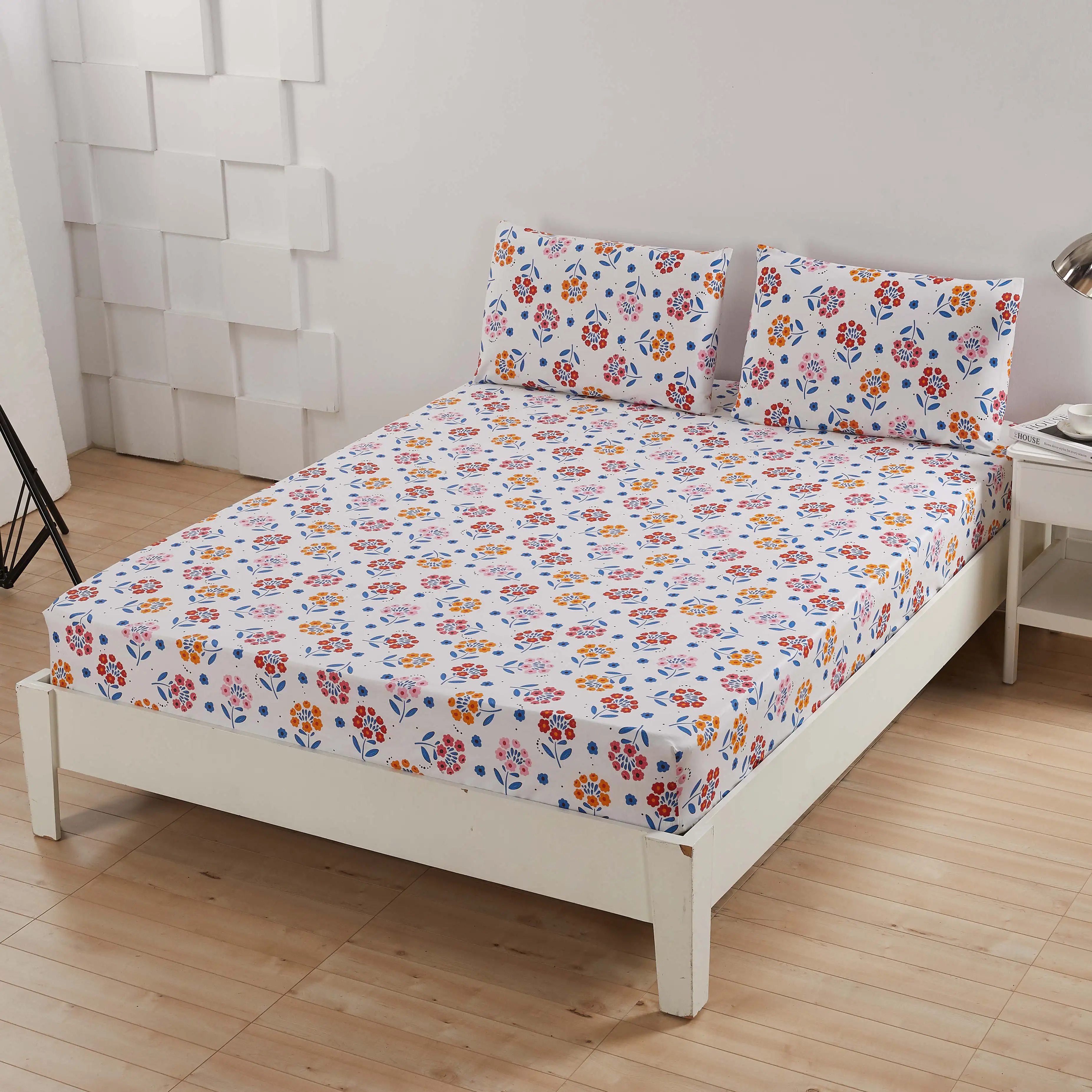3pcs King Cartoon Printed Striped Floral Leaves Fitted Bed Sheet 100% Cotton 200TC Home Use