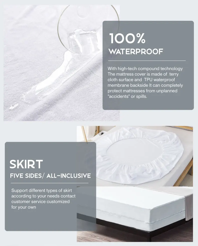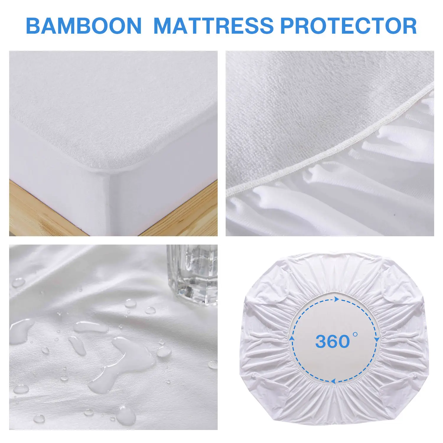 Luxury Washable Bamboo Mattress Protector Waterproof Terry Queen King Size Bed Cover Fitted Sheet for Hotel Home Use
