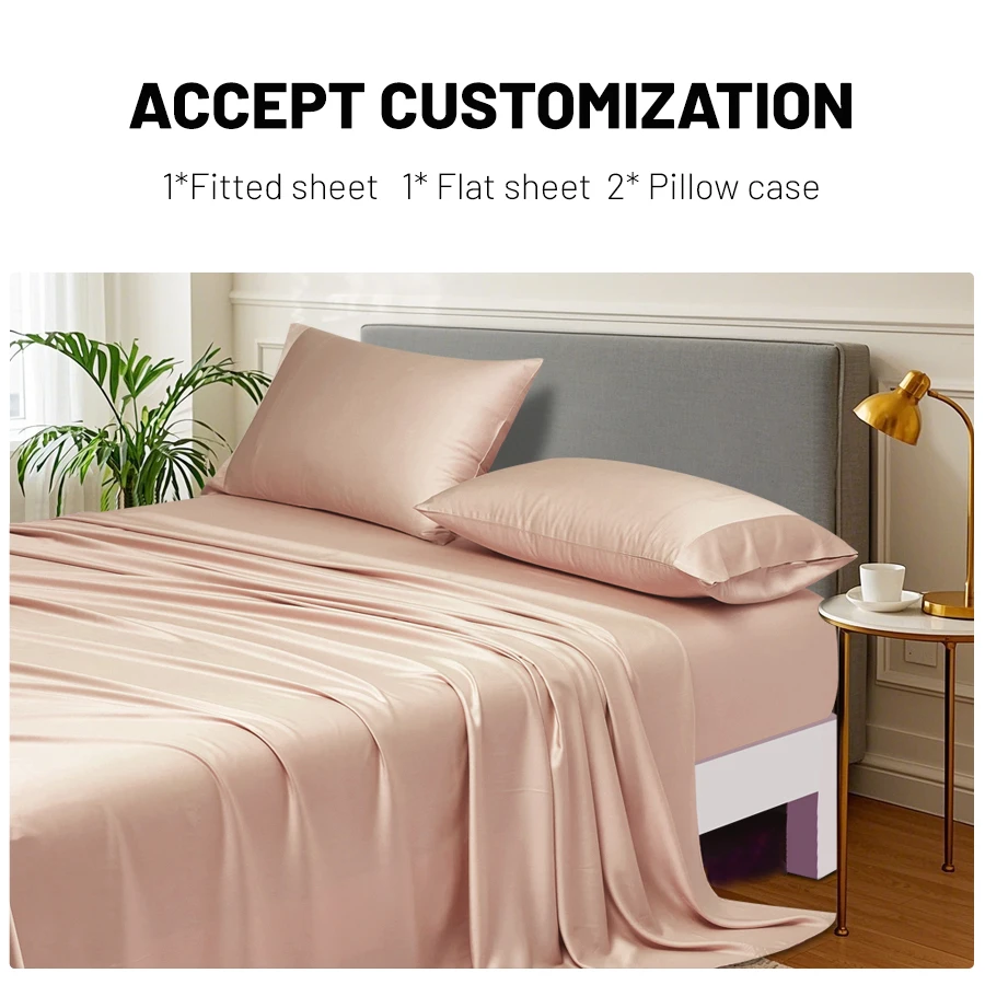 100% Bamboo Woven Modern Solid Color Bedding Set Flat Sheet Fitted Sheet Pillowcases 300tc Thread Count Wedding Four-piece Kit