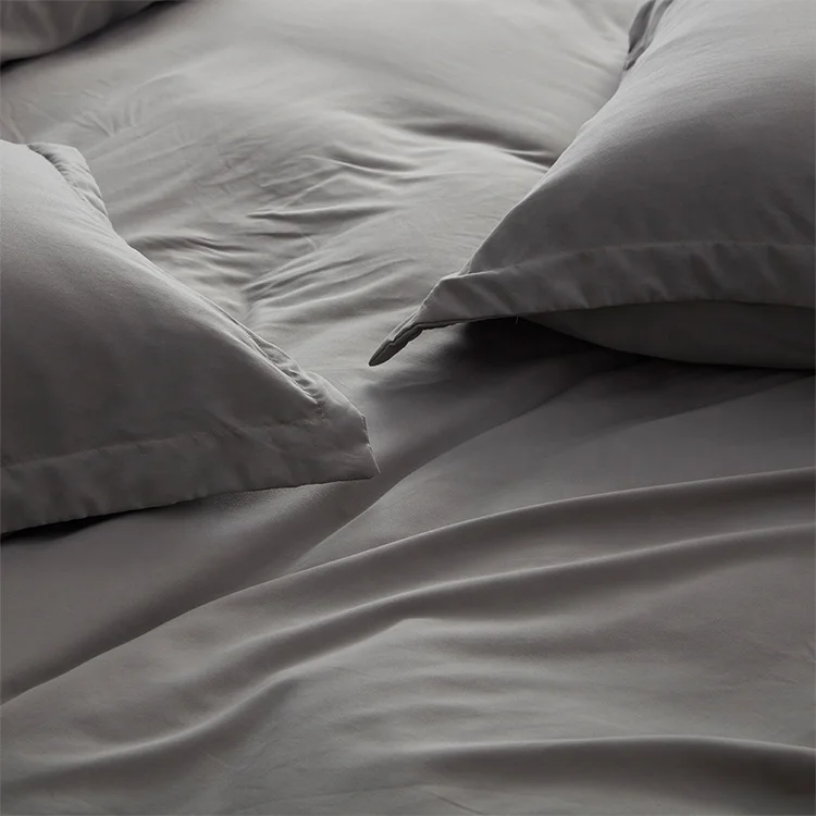 100% Bamboo Fiber Woven Modern Solid Color Bedding Set Super King Size Includes Flat Bed Sheet Fitted Duvet Cover
