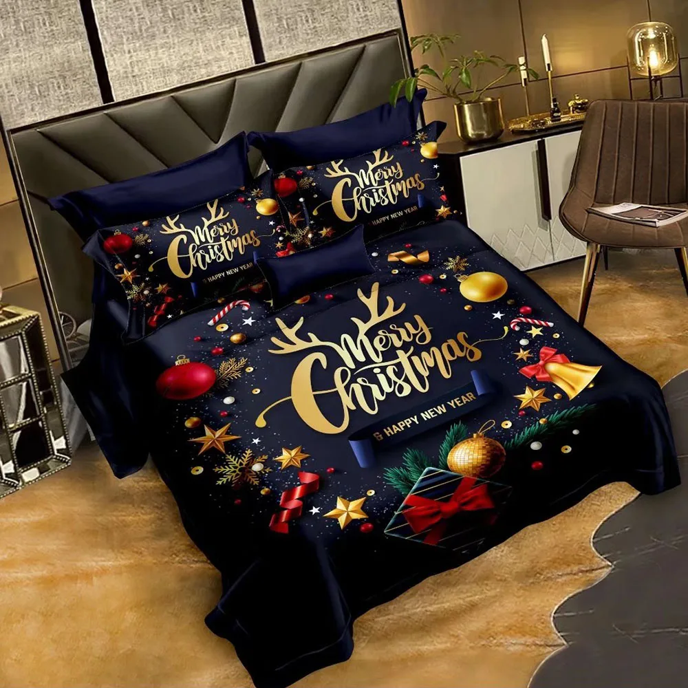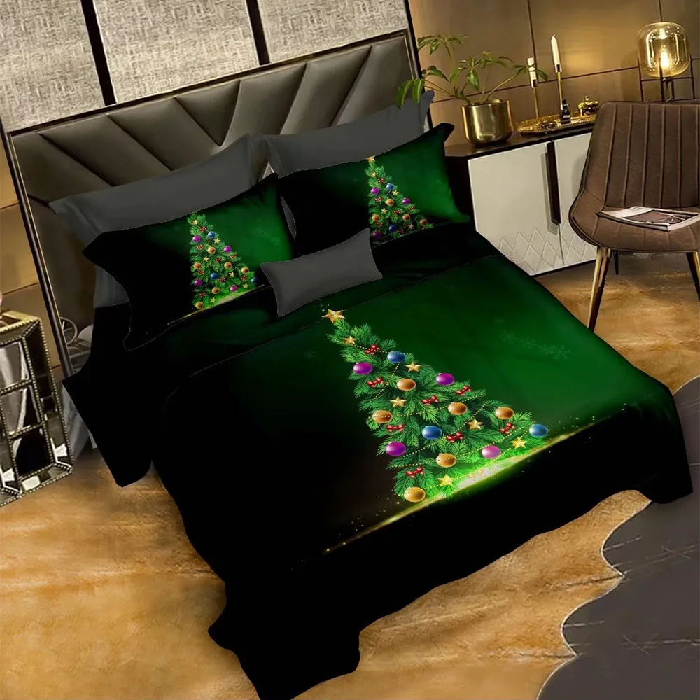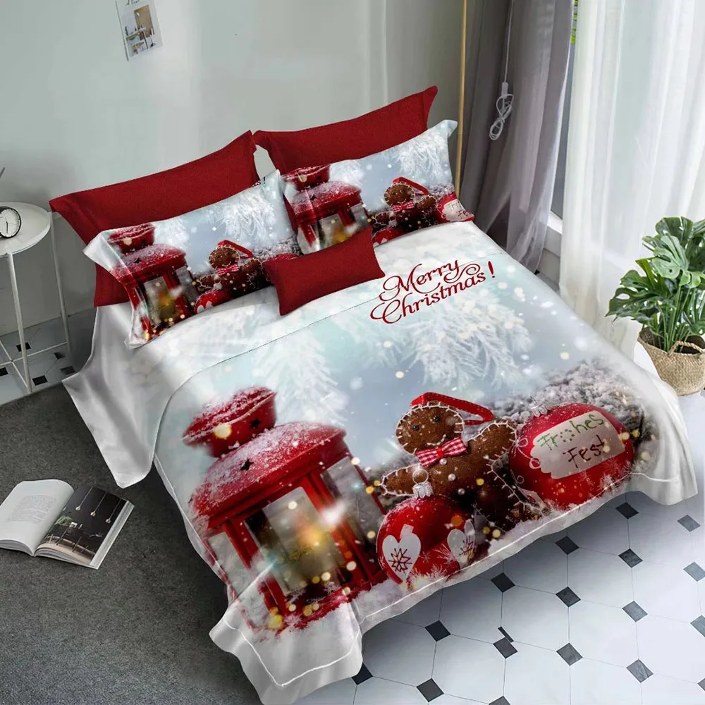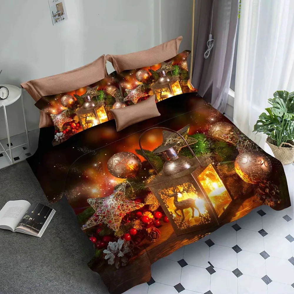 Christmas Duvet Cover Lantern Light 3D Printed Bedding Sets Queen Size Bedsheets Lightweight Microfiber Bed Sheet Set
