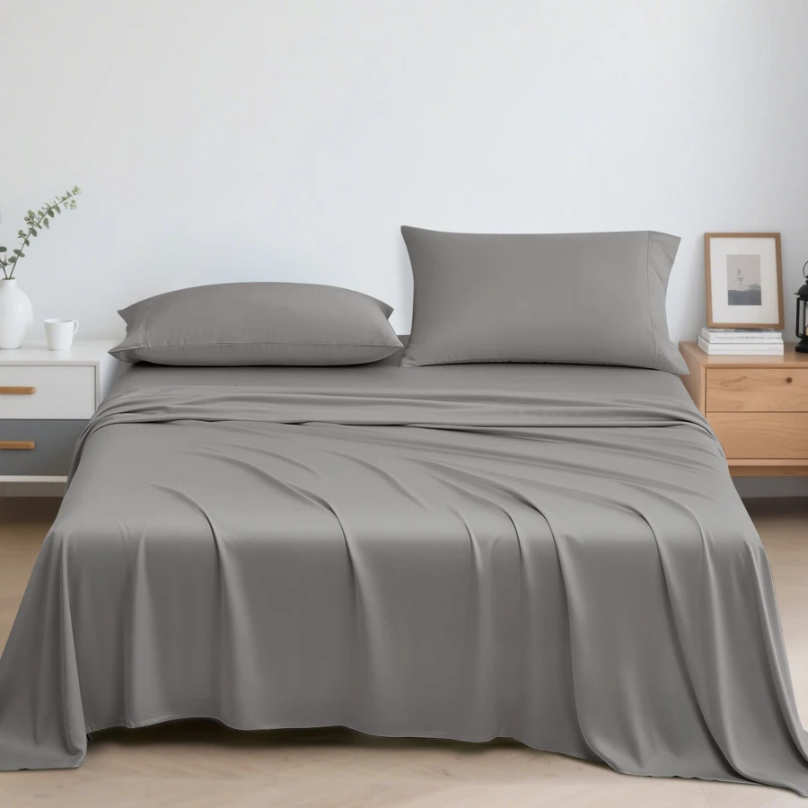 100% Bamboo Fiber Woven Modern Solid Color Bedding Set Super King Size Includes Flat Bed Sheet Fitted Duvet Cover