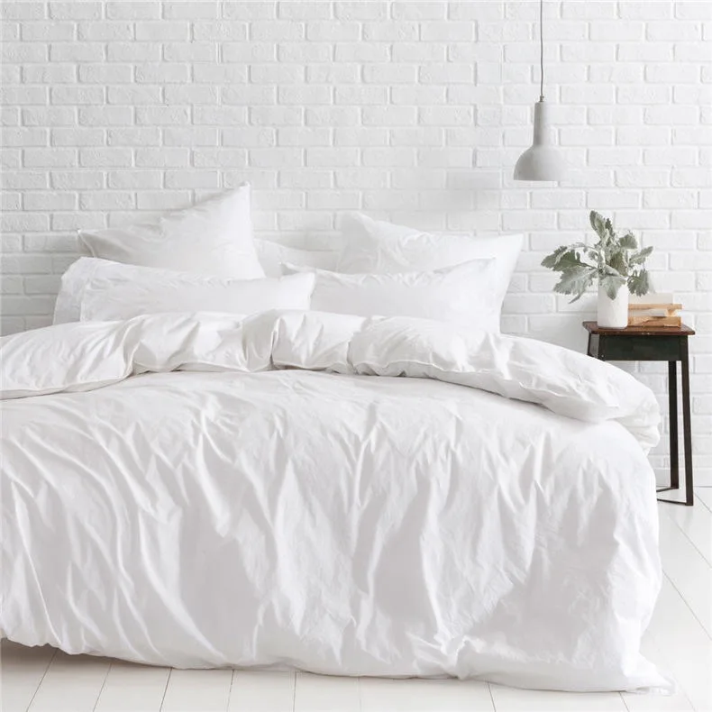 Modern Hotel White Cotton Bed Sheet Set Soft Breathable Wrinkle-Resistant Luxury Bedding 4-Piece