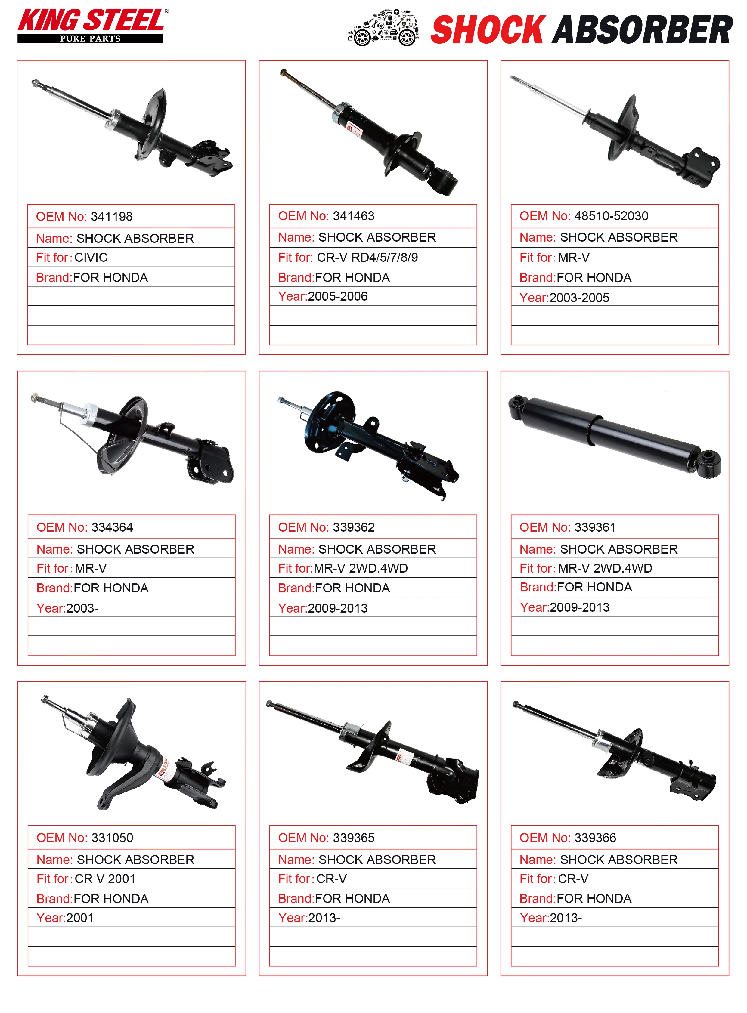 KINGSTEEL KYB 339365 339366 Amortiguadores Suspension Parts Front Auto Shock Absorber for HONDA CRV Japanese Car