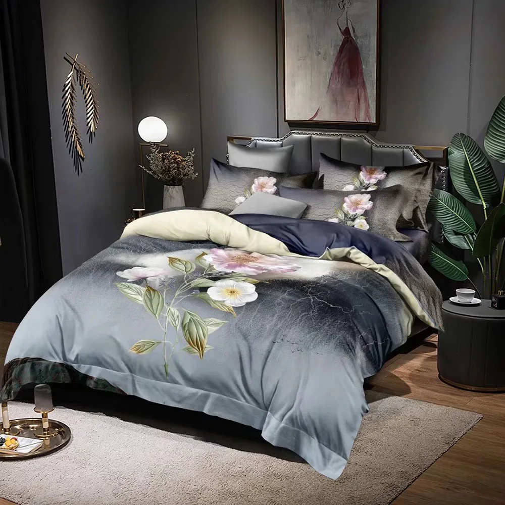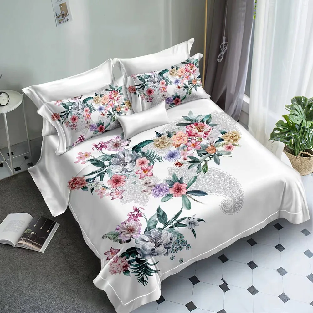 Designer Luxury Bedsheets Polyester Microfiber Fabric for 3D Digital Printed Floral Bedding Duvet Covers Sets