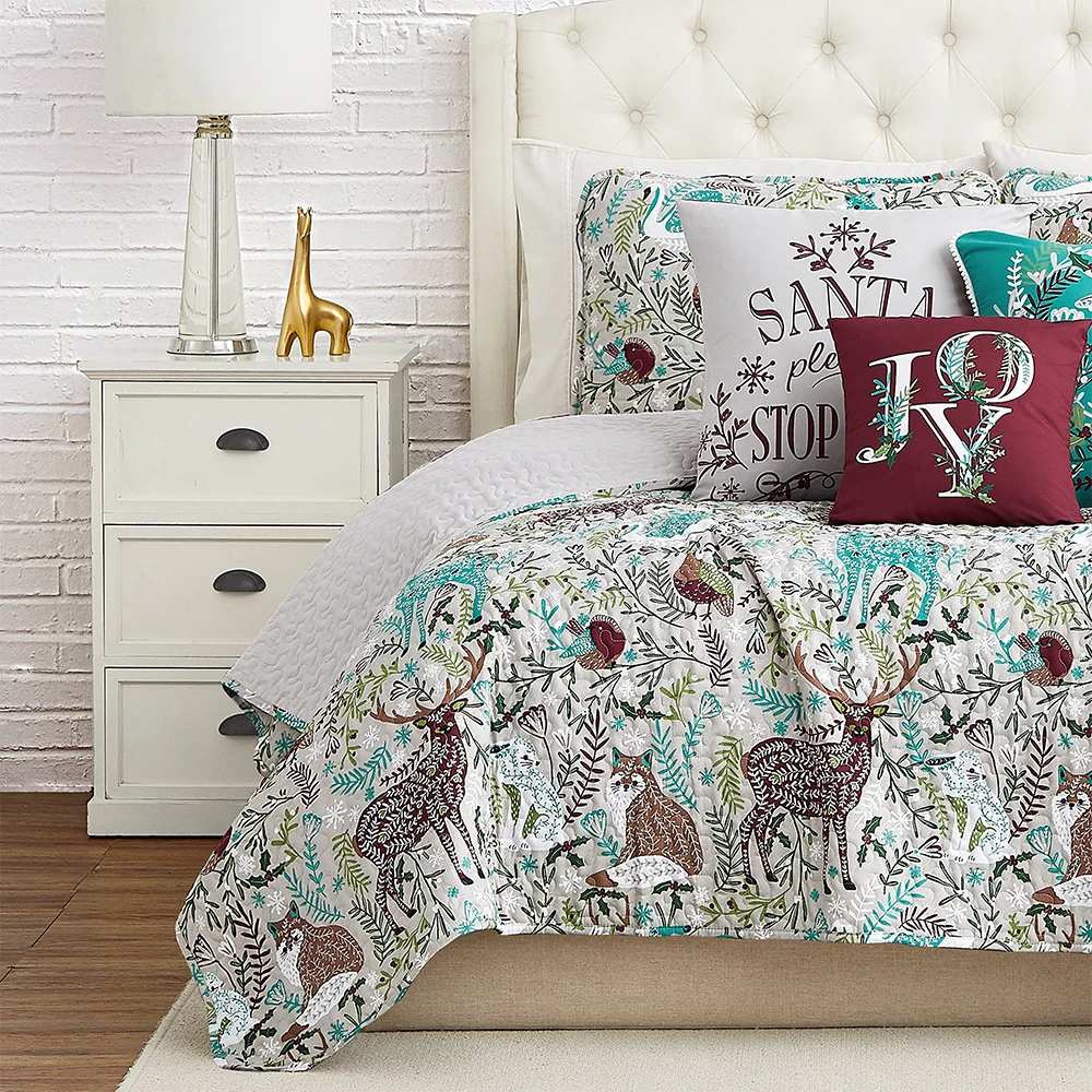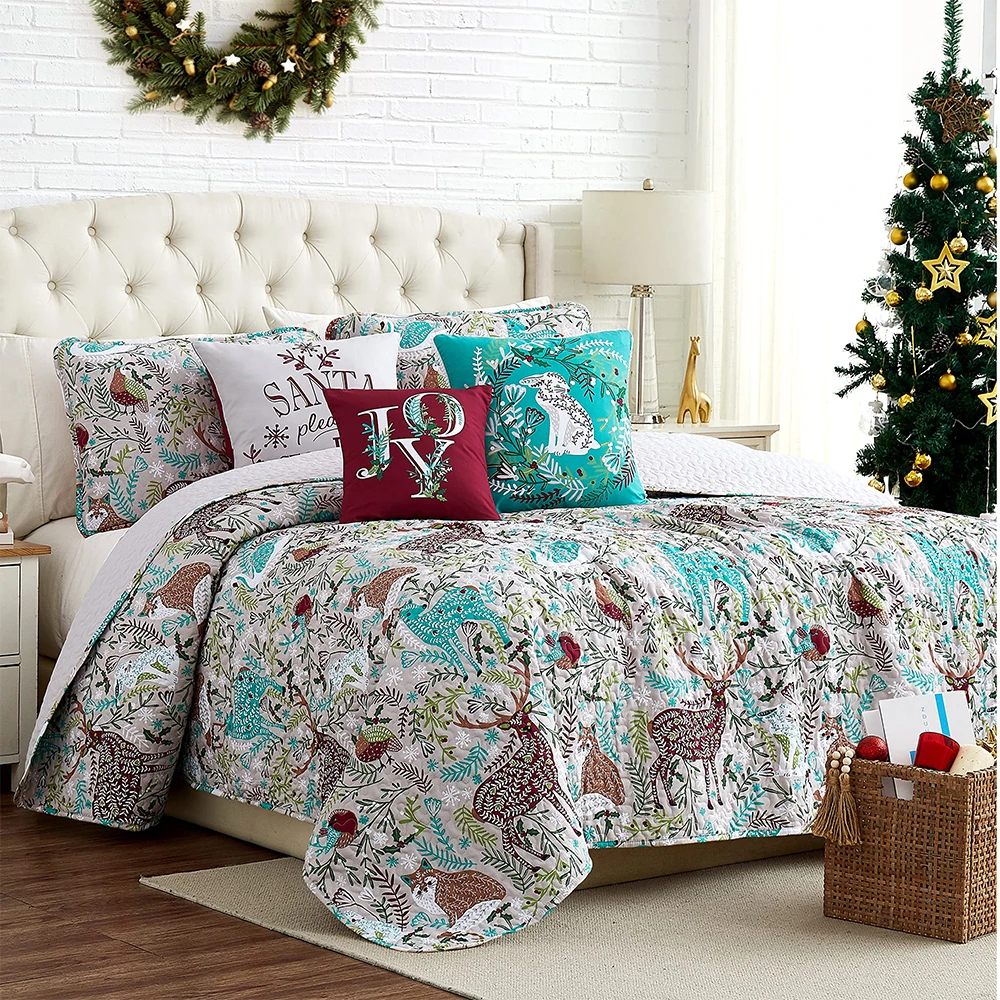 Factory Supply Eco-Friendly Super Soft Woodland Pattern Christmas Jacquard Quilts Bedding Bedspreads Set