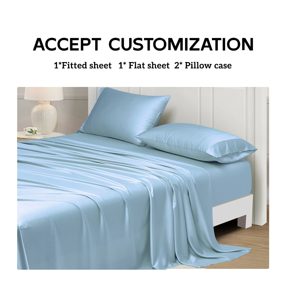 100% Bamboo Woven Modern Solid Color Bedding Set Flat Sheet Fitted Sheet Pillowcases 300tc Thread Count Wedding Four-piece Kit