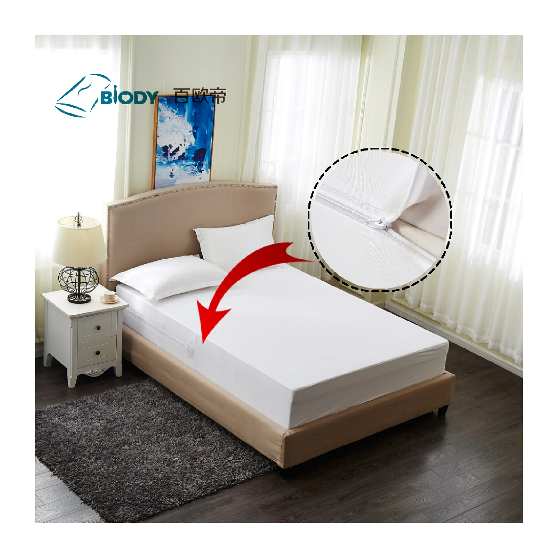 Waterproof Mattress Protector Queen Size Zippered Encasement Jacquard Fabric Noiseless Breathable All-Season Mahjong Mat