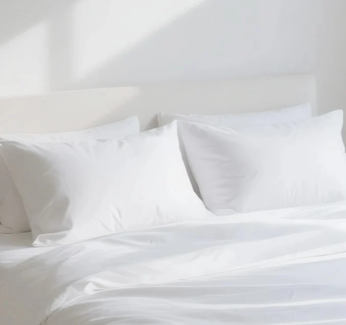 White Poly Cotton Plain Weave Hotel Bedding Set 4 Piece Durable Easy Care Budget Friendly Hotel Linens