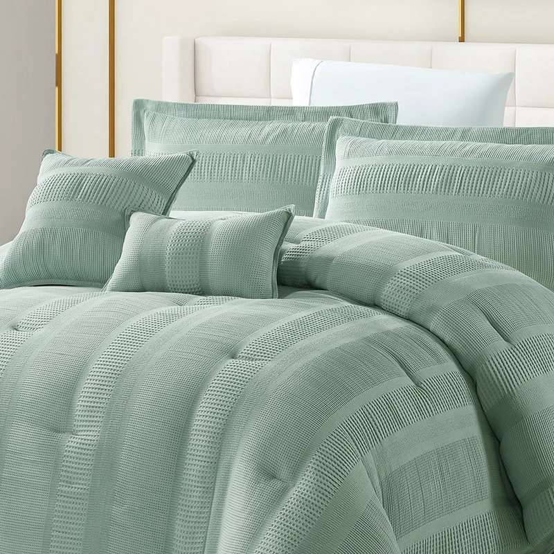 Customized 8pcs for Eco-Friendly Jacquard Microfiber Adult Bedding Set Solid Color Comforter Woven Plain Style Home Polyester