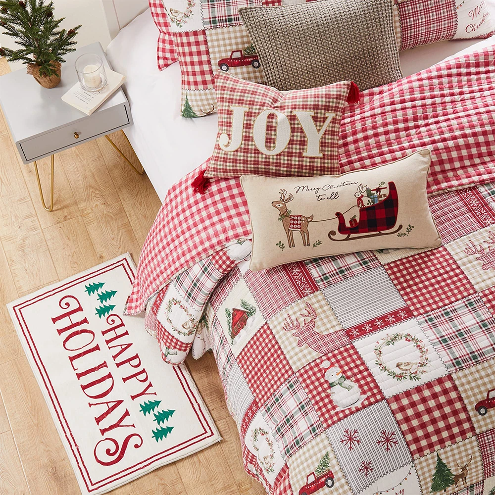 High Density Christmas Tree Car Checkered Print Egyptian Cotton Bedding Sets Luxury Bed Bedspread Sheets