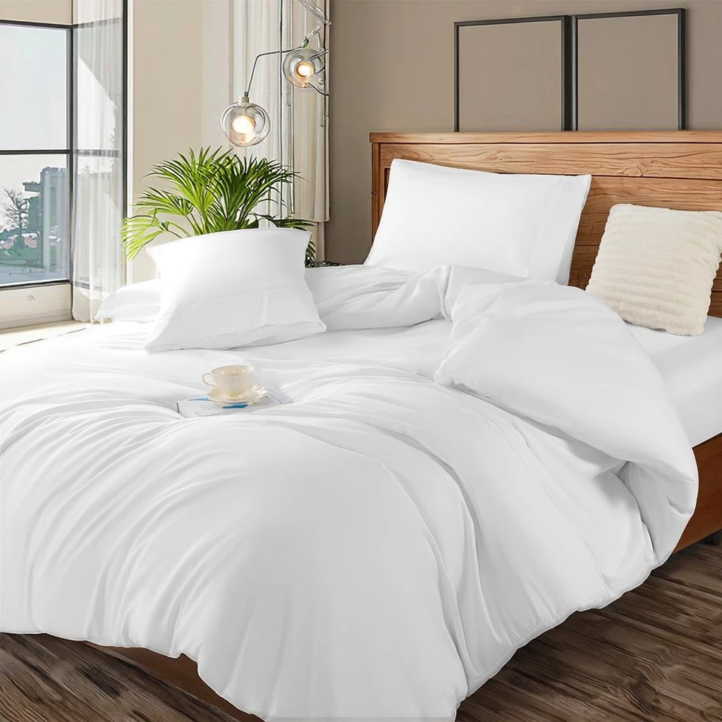 100% Bamboo Fiber Woven Modern Solid Color Bedding Set Super King Size Includes Flat Bed Sheet Fitted Duvet Cover