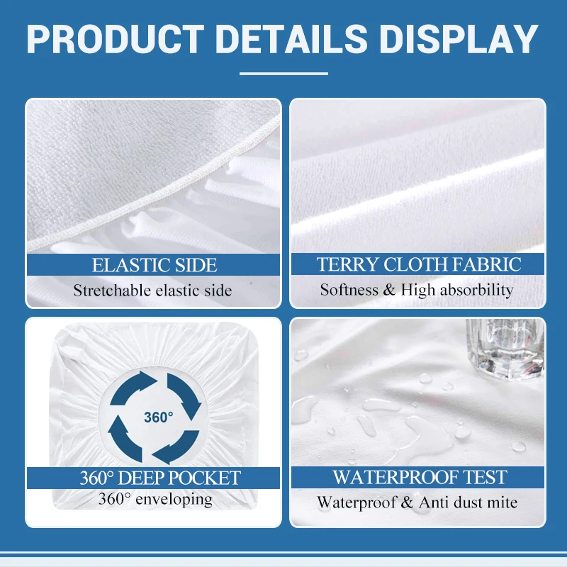 100% Polyester 95gsm Terry Removable Waterproof Mattress Protector for Hotels&hospitals&home Beds Mattress Cover Waterproof