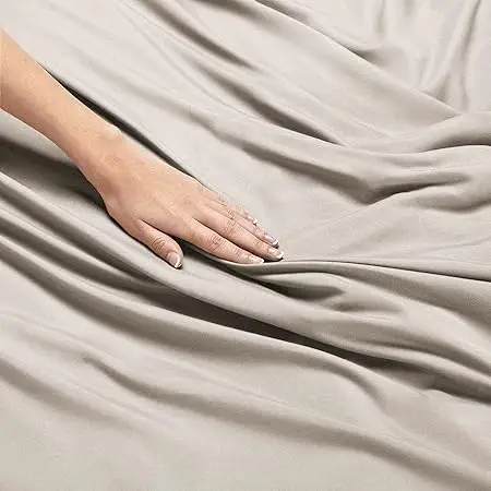 100% Bamboo Fiber Woven Modern Solid Color Bedding Set Super King Size Includes Flat Bed Sheet Fitted Duvet Cover