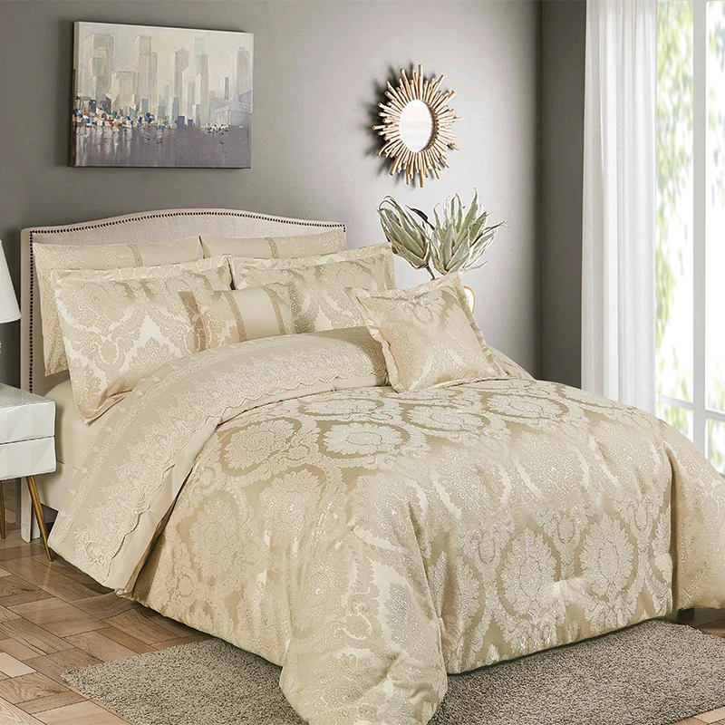 For KOSMOS Luxury Jacquard Comforter Set 8 Piece Floral Woven Bedding High Quality 200TC Dubai Style for Bedroom