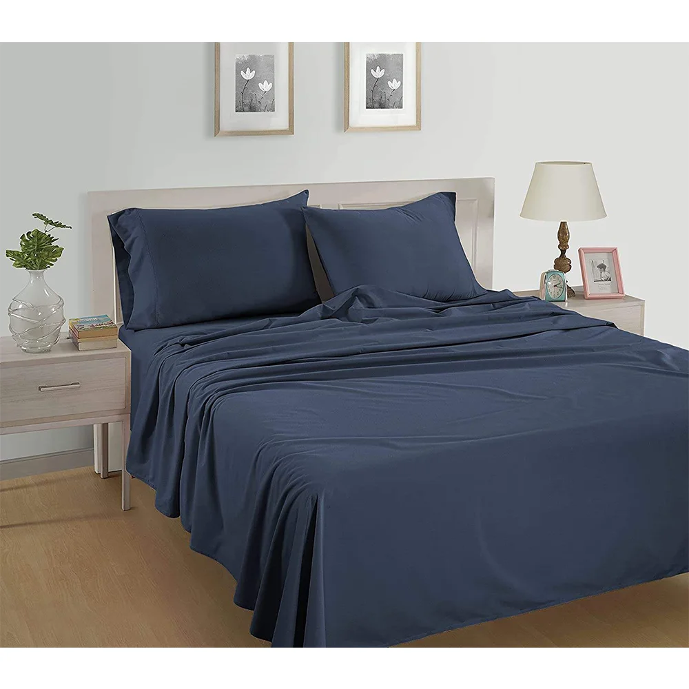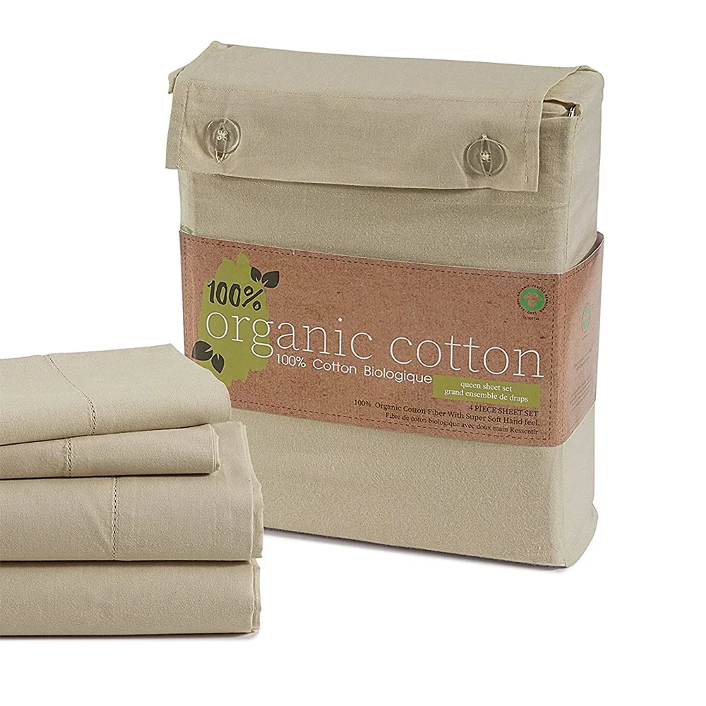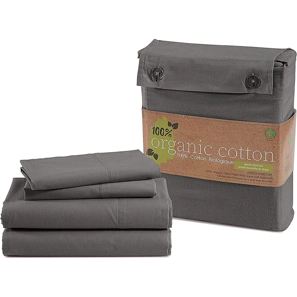 Sheets Set 4 Piece Pure Organic Cotton Long Staple Weave Ultra Soft Best Bedding Sheets for Bed