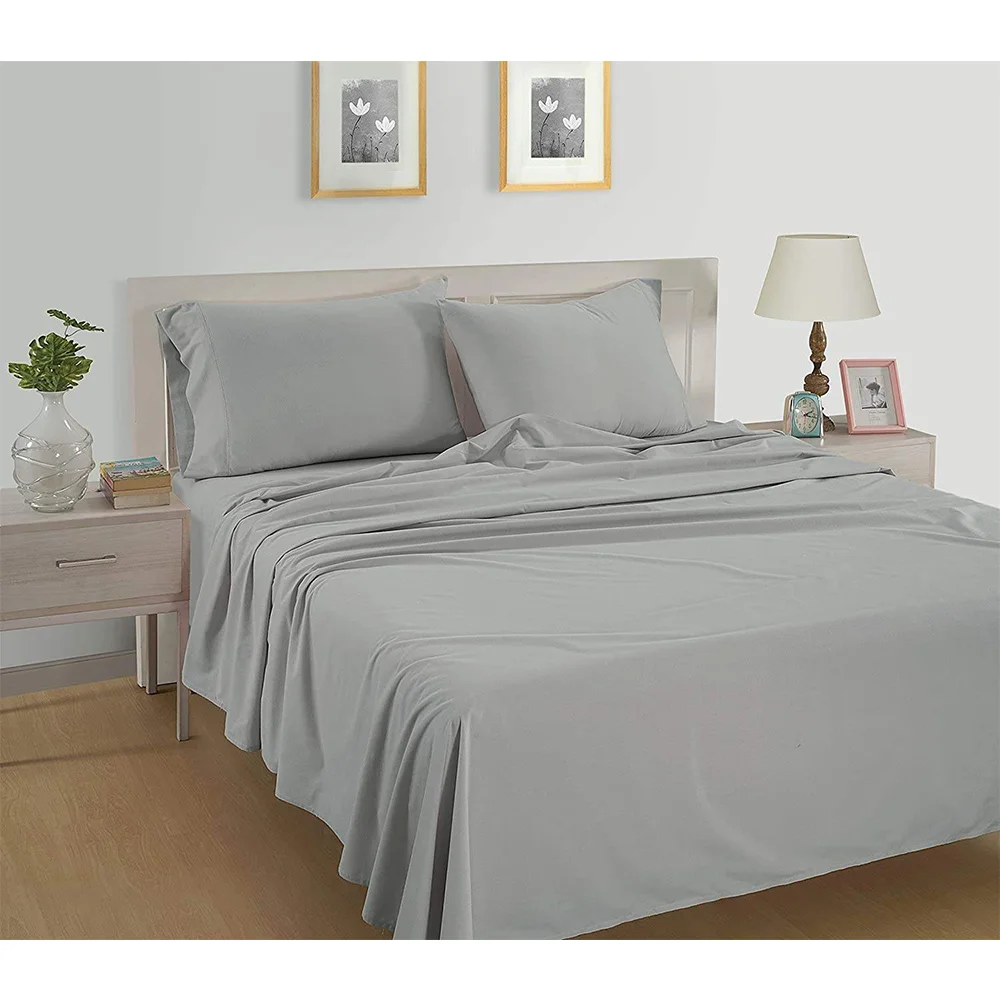 100% Bamboo Fiber Woven Modern Solid Color Bedding Set Super King Size Includes Flat Bed Sheet Fitted Duvet Cover