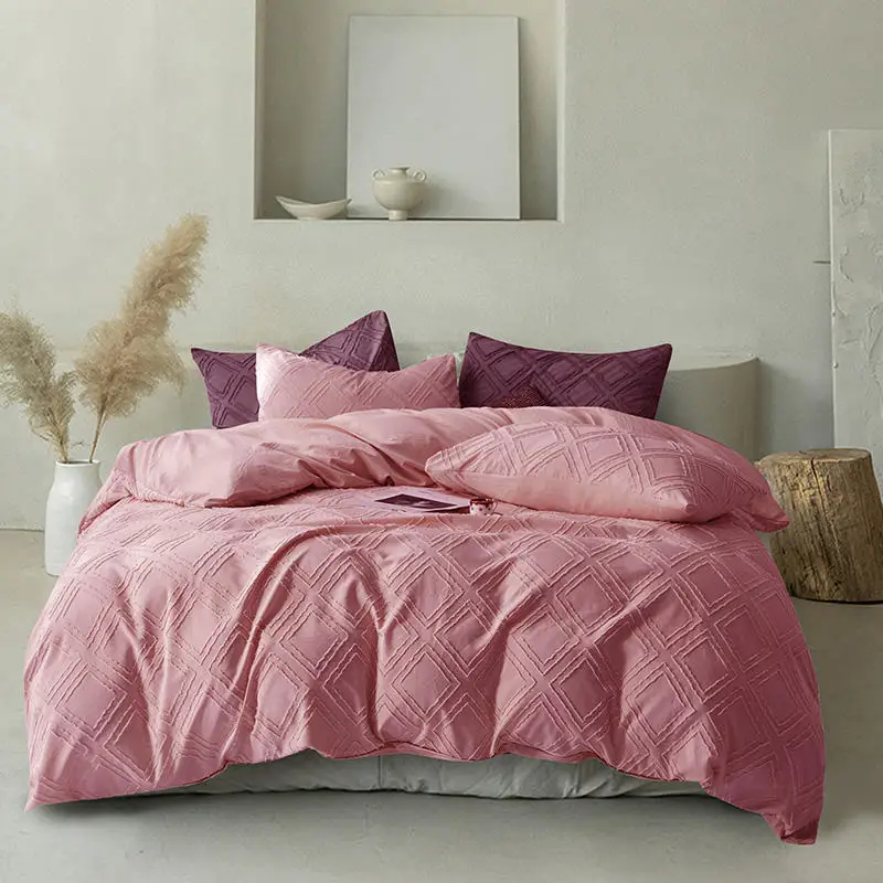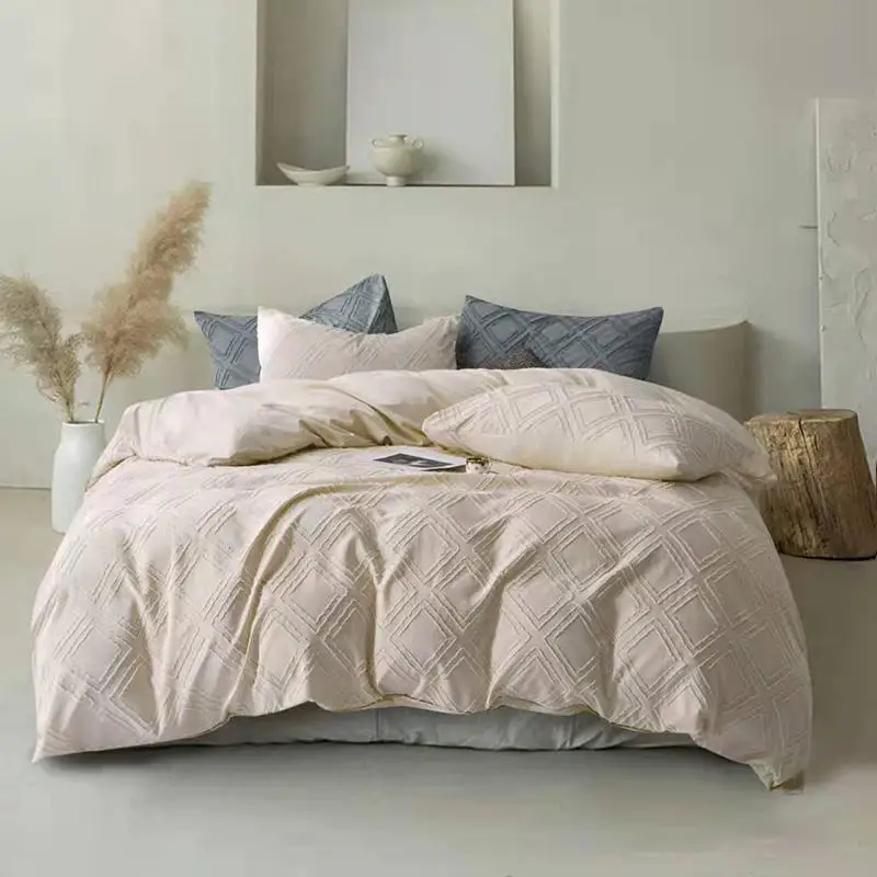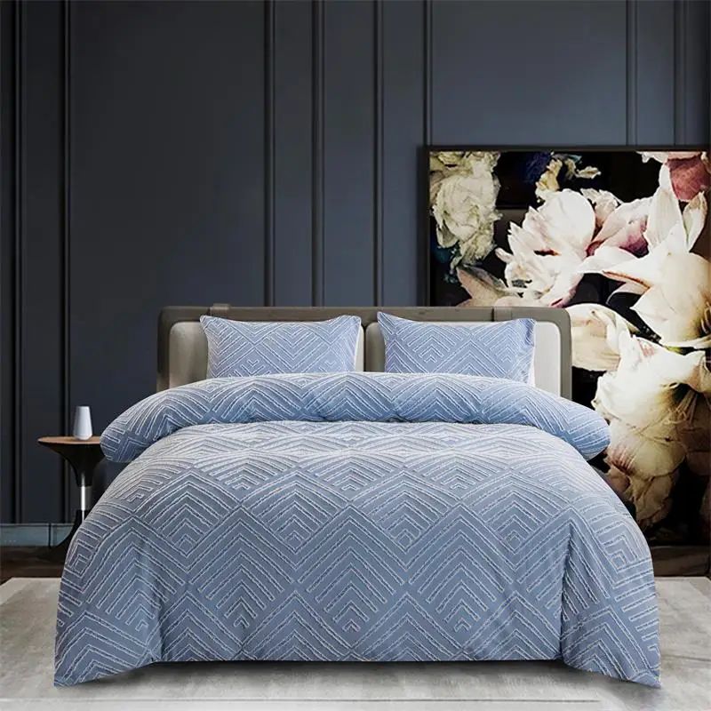 Durable Microfiber Embroidery Tufted Luxury Comforter Pillowcases Duvet Cover Bedding Set