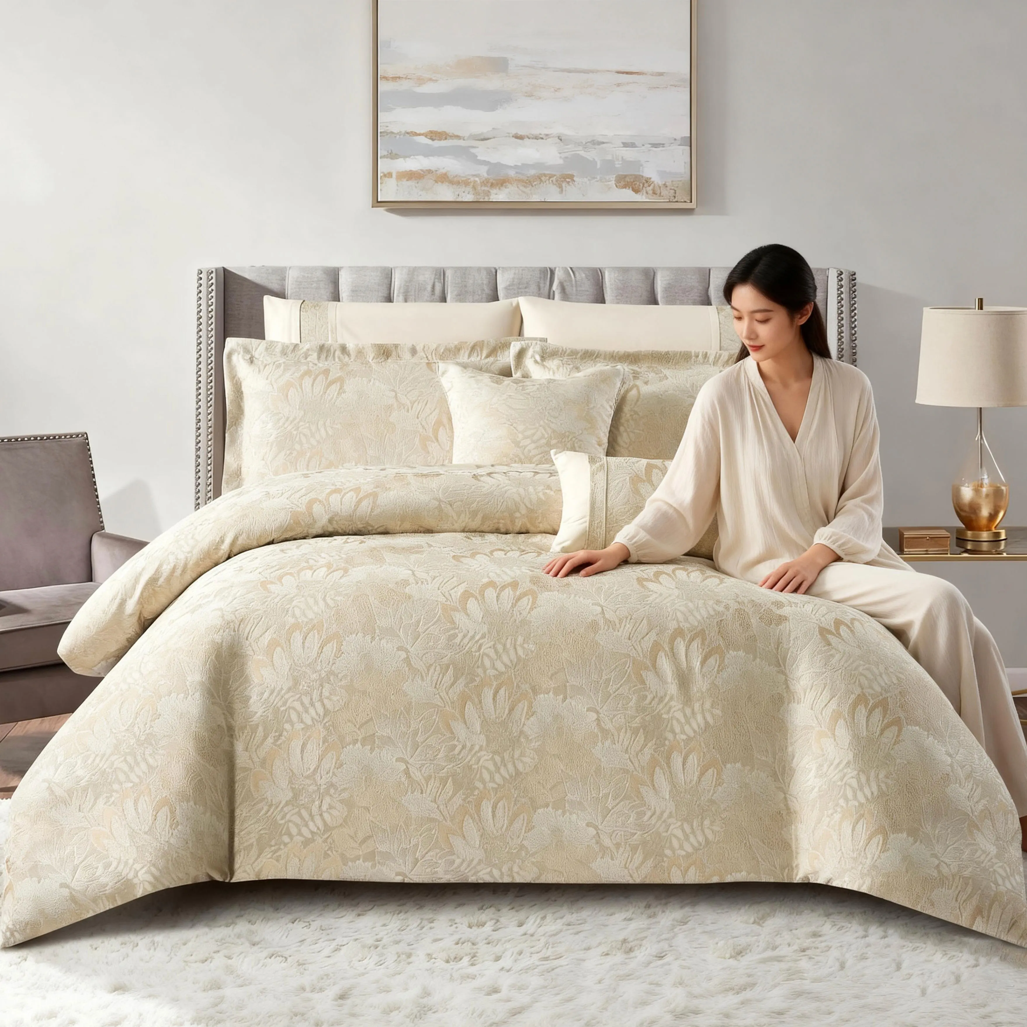Factory Customizable Jacquard Bedding New Design Fantasy Flowers Comforter Set