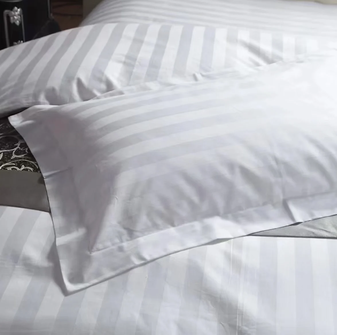 Wholesale Modern Hospital Home Use Queen King Size 100% Cotton 3cm Satin Solid Pillowcase Custom Hotel Pillow Cover