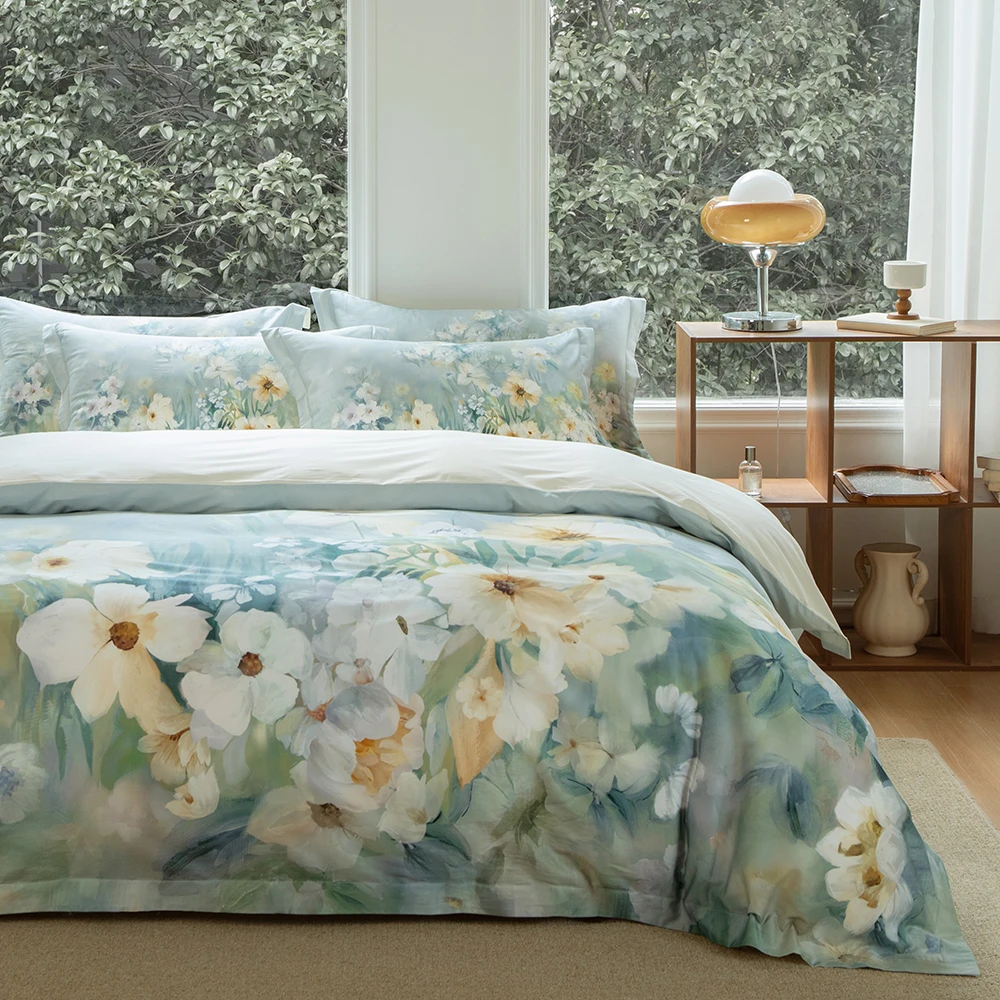 Floral Design Microfiber Digital Print Quilt Cover Sets King Size 3D Bed Sheets and Duvet Cover Bedding Set