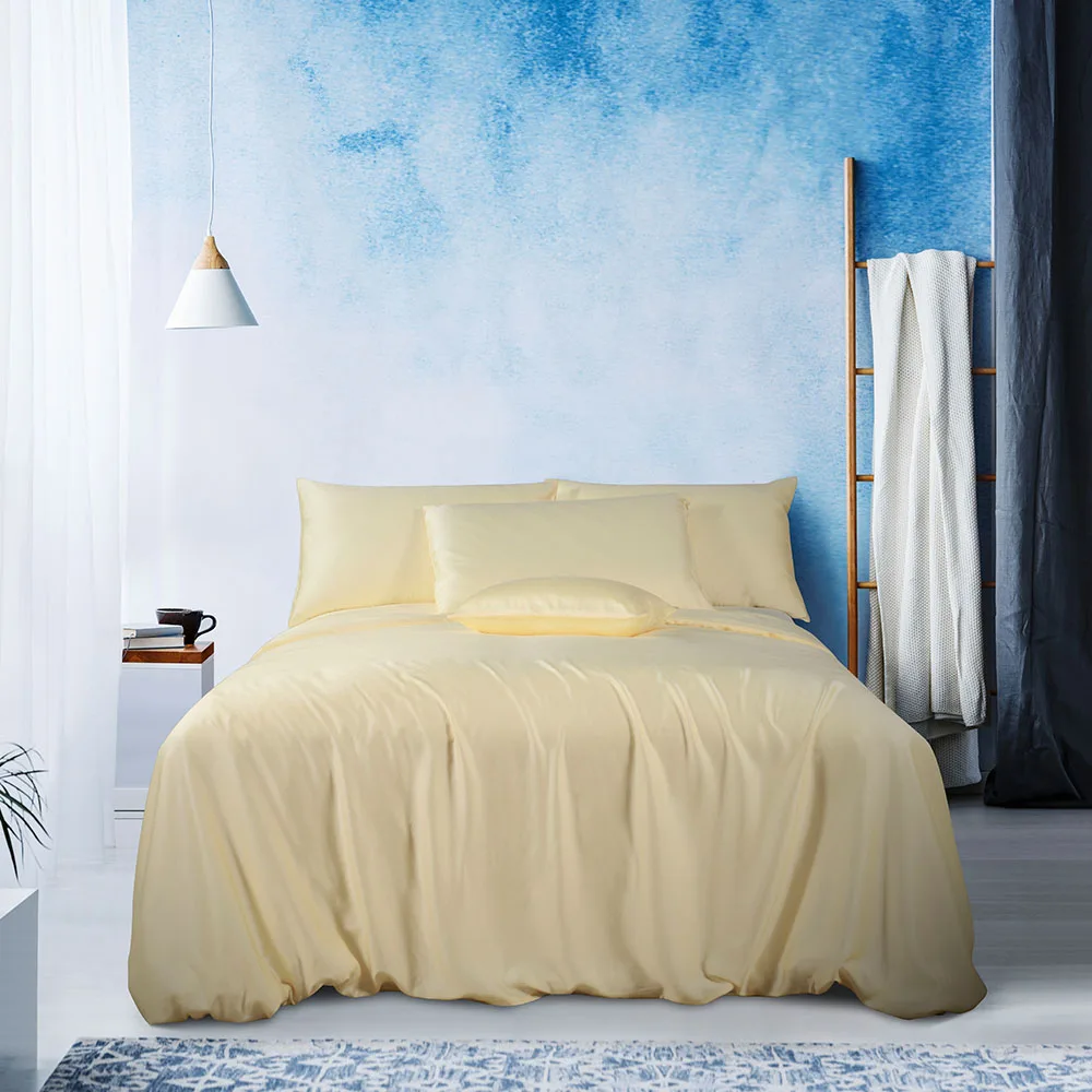 100% Bamboo Fiber Woven Modern Solid Color Bedding Set Super King Size Includes Flat Bed Sheet Fitted Duvet Cover