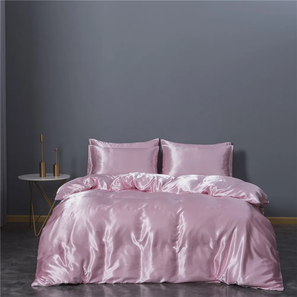 Hot Sale Silky Satin Duvet Cover Set Bedsheet Polyester Superior Quality Duvet Cover Bedding Set