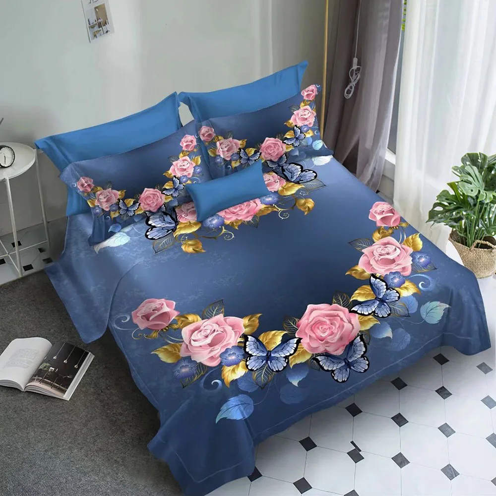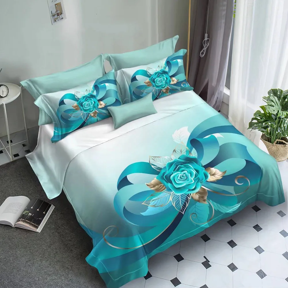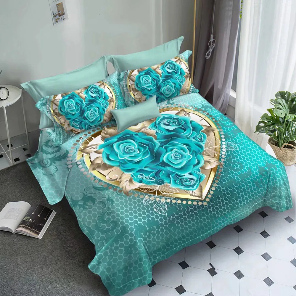 Red Gold Luxury Rose Theme Polyester Bedding Set Collection 3D Printing Pillowcases Duvet Cover Set