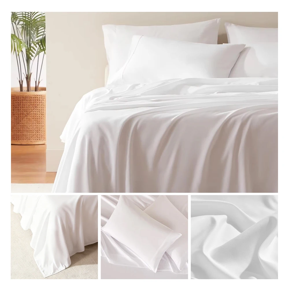 100% Bamboo Woven Modern Solid Color Bedding Set Flat Sheet Fitted Sheet Pillowcases 300tc Thread Count Wedding Four-piece Kit