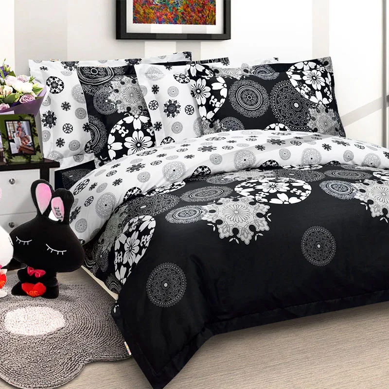 Black and White Branded Bedsheet Cover Bed Fitted Bed Sheet With Pillow Case Set