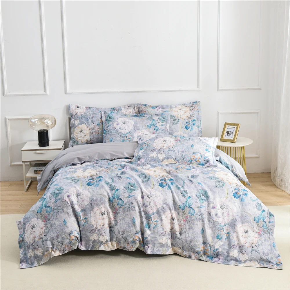 4Pcs Duvet Quilt Cover Set Peony Customized Fabric Cotton Fitted Bed Sheet Digital Printed Floral Design Bedding Sets