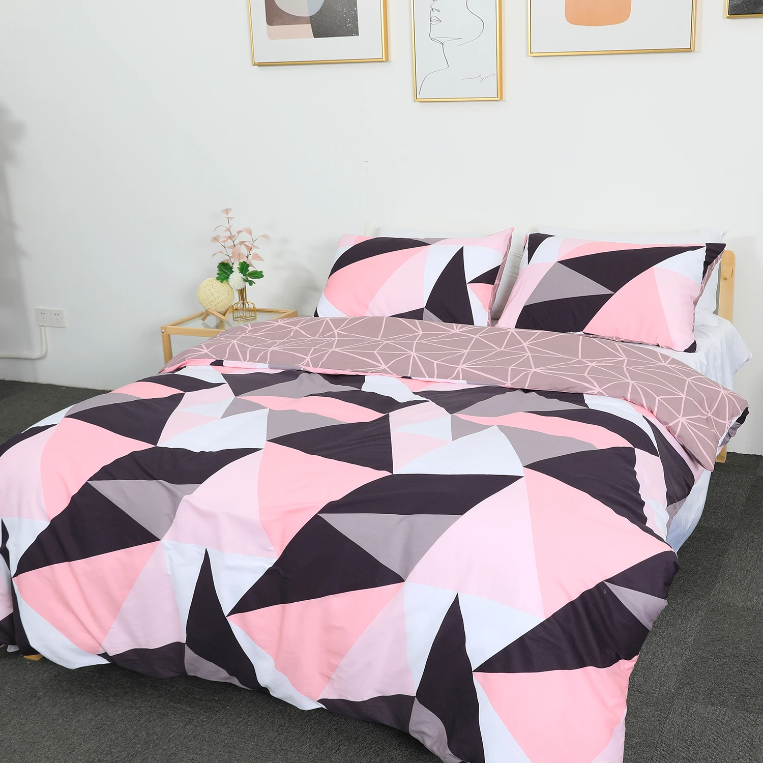 100% Bamboo Fiber King Size 300tc 3-Piece Modern Duvet Cover Set with Flat Sheet Fitted Sheet and Pillowcases