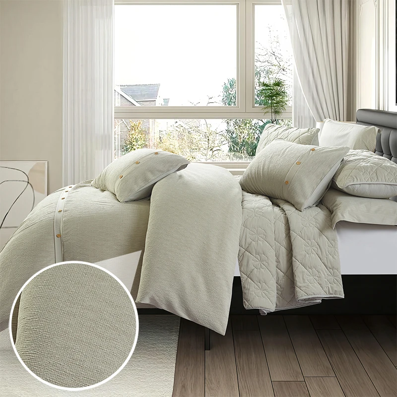 For KOSMOS Customized Luxury 6pcs Bedding Comforter Sets New Solid Home Textiles with Woven Technique Plain Style