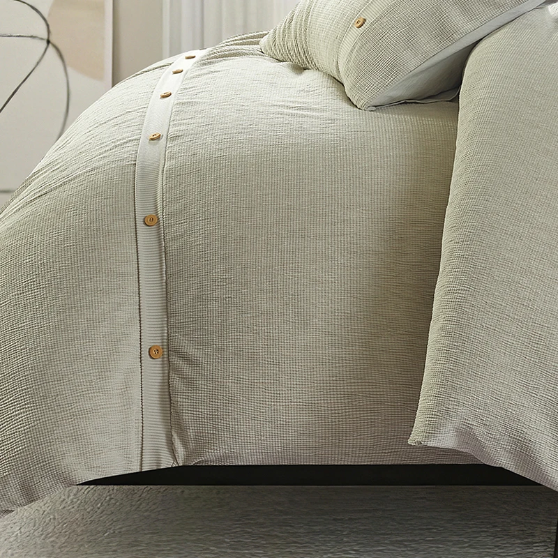 100% Bamboo Fiber Woven Modern Solid Color Bedding Set Super King Size Includes Flat Bed Sheet Fitted Duvet Cover