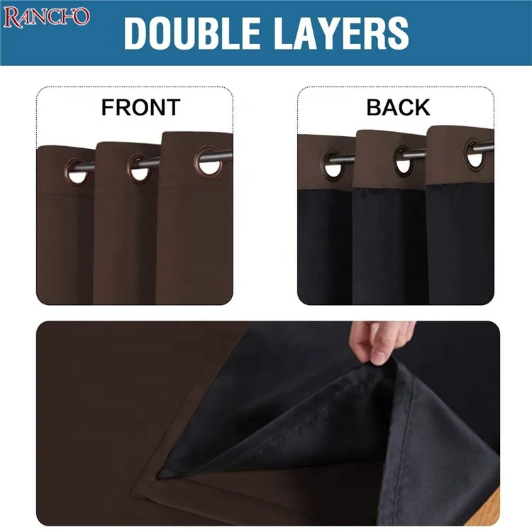 High Quality Double Layer 100% Blackout Window Ready Made Curtains Luxury