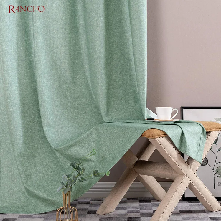Linen Look Blackout Window Panels Curtains Grommet Top for Living Room Bedroom