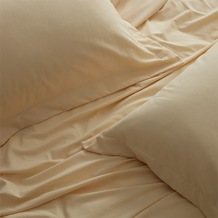 100% Bamboo Fiber Woven Modern Solid Color Bedding Set Super King Size Includes Flat Bed Sheet Fitted Duvet Cover