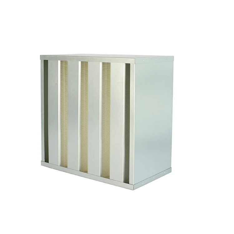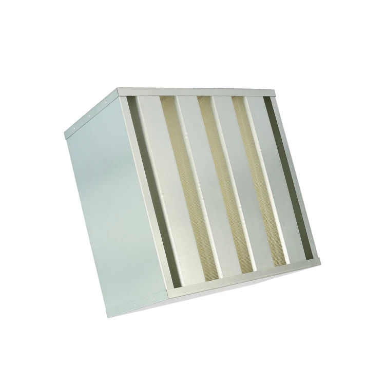 Hot Sale HVAC AIR Hepa Filter H14 air Filter Gal Frame 4 V Bank Box Type air Filter 24x24x12 Inch