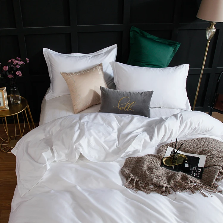 100% Bamboo Woven Modern Solid Color Bedding Set Flat Sheet Fitted Sheet Pillowcases 300tc Thread Count Wedding Four-piece Kit
