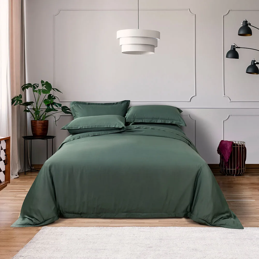 100% Bamboo Fiber Woven Modern Solid Color Bedding Set Super King Size Includes Flat Bed Sheet Fitted Duvet Cover