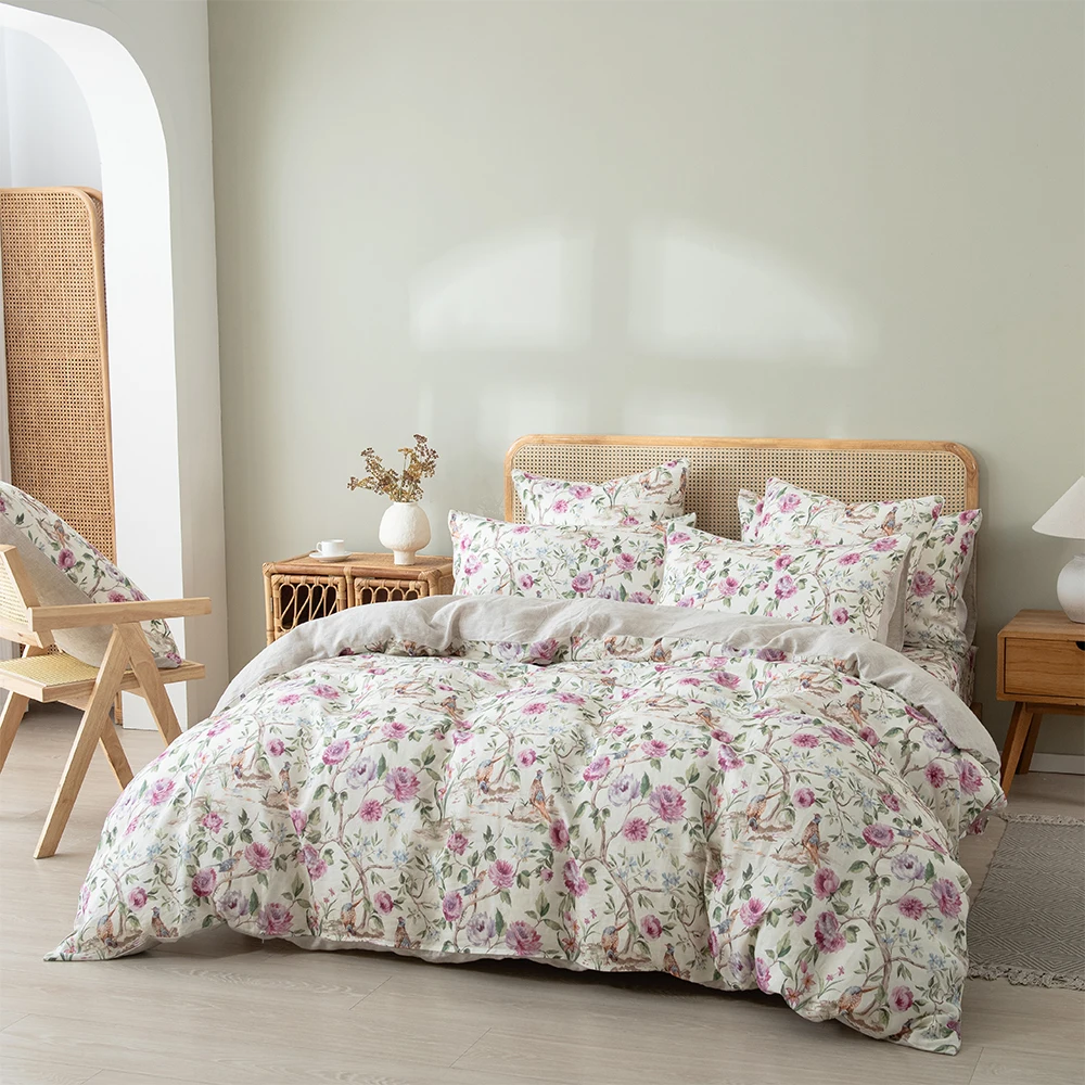 Linen Duvet Cover Sets Linen Bedding Custom Print Plant Pattern Bedroom Bedding Set