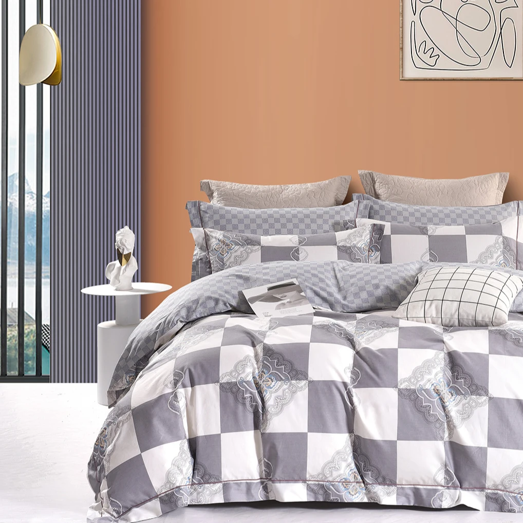 100% Bamboo Fiber King Size 300tc 3-Piece Modern Duvet Cover Set with Flat Sheet Fitted Sheet and Pillowcases